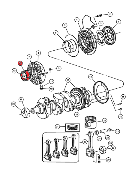 Cuzineti palier mijloc Jeep Cherokee KJ 2.5 CRD, 2.8 CRD STD (2002-2007), set cuzineti cu pinteni arobore cotit flansele din mijloc, 2,3,4.